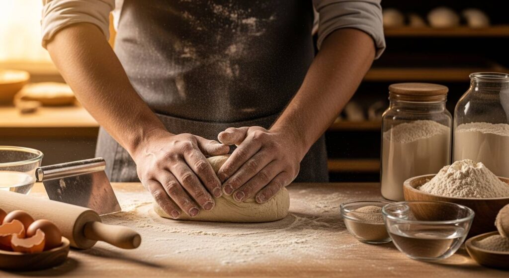 「生地と会話する」とは具体的にどういうことでしょうか。まず、生地に触れる瞬間の「第一印象」を大切にします。指先で生地の弾力、粘り気、温度を感じます。生地がベタベタしていれば水分過多、硬すぎれば水分不足のサインです。この触感こそが生地からのメッセージなのです。